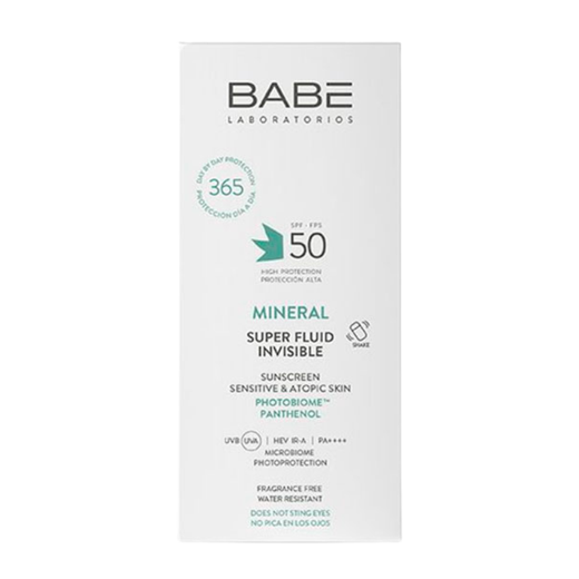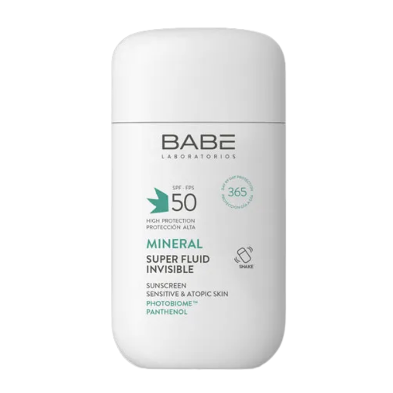 Babé Mineral Super Fluid Invisible SPF50 (50 ml) és un fotoprotector facial d'ampli espectre formulat exclusivament amb filtres 100% minerals, la qual cosa el converteix en una opció ideal per a químics.