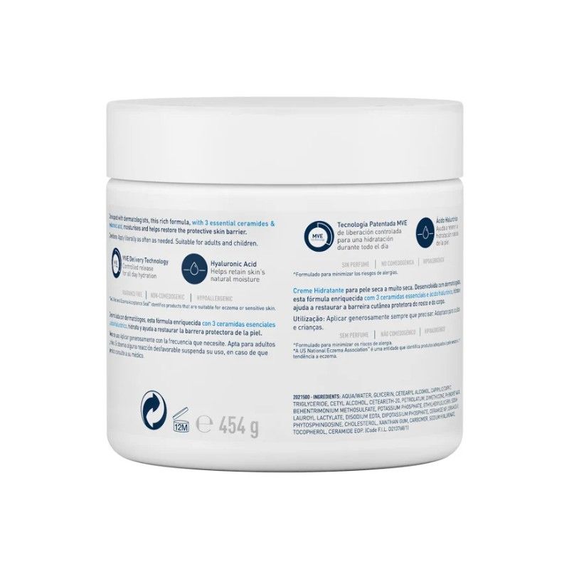 La Crema Hidratant CeraVe és una crema hidratant rica, no greixosa i de ràpida absorció per a pells Seques a molt seques del rostre i el cos. Apta per a pell seca a molt seca, pell irritada, amb picor, o amb tendència atòpica.