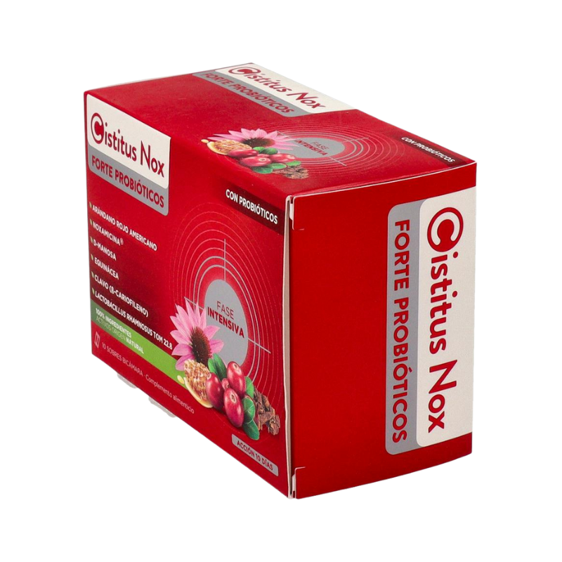 Per als qui pateixen molèsties urinàries recurrents o busquen un reforç natural durant episodis aguts, Cistitus Nox Forte Probióticos antiinflamatòria i un suport probiòtic per ajudar a restablir i preservar el benestar del tracte urinari inferior.