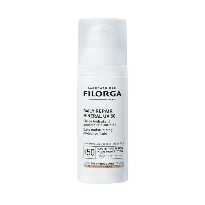 Filorga Daily Repair Mineral UV50 50 ml és un fluid hidratant i fotoprotector facial d'alta protecció formulat amb la filtració protectora per a la protecció promulgada amb el filtre 00 raigs UV i prevenir el fotoenvelliment. La seva textura lleugera i acabat invisible el fa adequat com a darrer pas de la rutina diària i com a base de maquillatge.