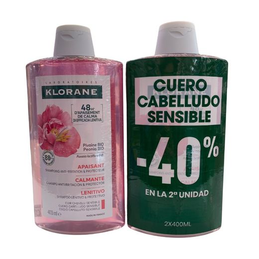 Pack duplo cloran xampu a la peònia 400ml x2 el xampú a la peònia neta i alleuja el cuir cabellut sensible i irritat de forma immediata.