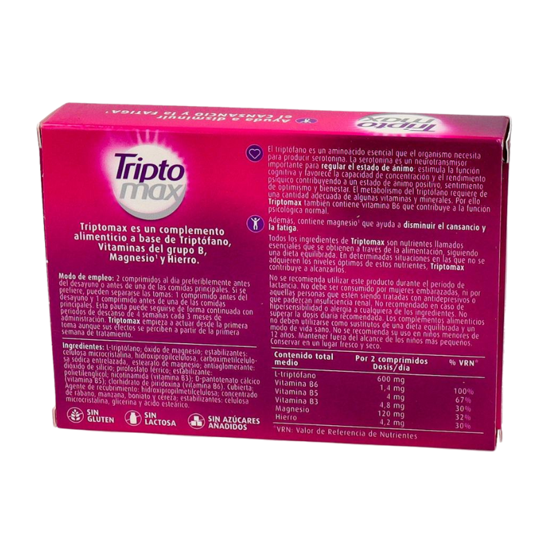 Complement alimentari a base de triptòfan amb vitamines del grup B, ferro i magnesi. El triptòfan es troba en totes les proteïnes i intervé en funcions relacionades amb el sistema nerviós, com per exemple, la producció de serotonina al nostre cervell.